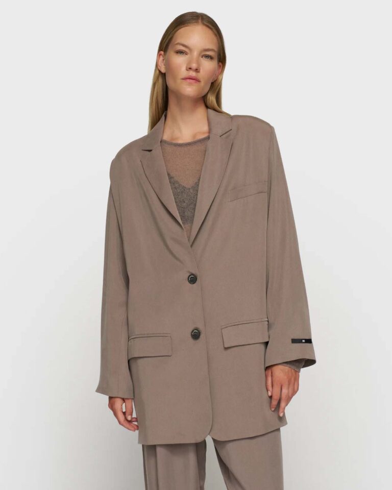 Blazer Flowy Moonrock van 10Days is gemaakt van zacht, gewassen lyocell twill en heeft die nonchalante, flowy look waar je direct in weg wilt lopen. De binnenkant is gevoerd met een tencelvoering met monogramprint voor een subtiele 10DAYS-touch. Afgewerkt met twee knopen, een fake borstzakje, klepzakken en een โ10โ-borduurtje op de linkerzak. Het label onderaan de mouw maakt het helemaal af. Een stijlvolle blazer met een laid-back feel.