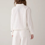 Blouse Denim White Cropped van het merk Summum is gemaakt van lichte, zachte twill denim en heeft een boxy bomberfit voor een moderne, casual uitstraling. De blouse heeft lange mouwen en een doorknoopsluiting, waardoor hij makkelijk te dragen en te combineren is.