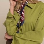 De blouse heeft een regular fit met een knopenlijst aan de voorzijde. De wijde mouwen zijn afgewerkt met manchetten en subtiele gouden knopen, wat zorgt voor een verfijnd en vrouwelijk detail. Een blouse die karakter toevoegt aan elke outfit.