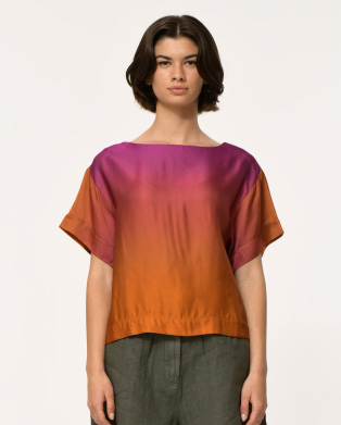 Blouse Ficelle in uniek kleurenverloop van La Fee Maraboutee brengt speelsheid en elegantie samen. Het tie-dye kleurenverloop geeft deze blouse een artistieke uitstraling, terwijl de soepele stof zorgt voor een zachte, vrouwelijke valling. Een item dat opvalt zonder te overheersen.