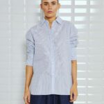 Blouse Noa Stripe in het lichtblauw van With Black is een echte klassieker met een moderne twist. Gemaakt van zachte katoenkwaliteit draagt hij heerlijk comfortabel, terwijl de brede pinstripe hem een frisse en eigentijdse uitstraling geeft. Met zijn normale fit, klassieke kraag en manchetten met knoop is dit een tijdloos shirt dat je eindeloos combineert. De afgeronde zoomlijn en heuplengte maken hem perfect om zowel in je broek te dragen als los voor een meer relaxte look.