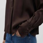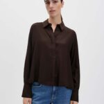 Blouse Zefine Espresso bruin van Someday is een stijlvol en tijdloos item met een clean silhouet. Gemaakt van zacht vallende viscose en ontworpen zonder overbodige details, krijgt de blouse een elegante uitstraling met een licht uitlopende A-lijn. Vrouwelijk en toch gekleed, waardoor je haar net zo makkelijk draagt op kantoor als casual met een jeans. De brede pasvorm, uitlopende snit en iets ingekorte lengte zorgen voor een moderne look, terwijl de lange mouwen en klassieke overhemdkraag het geheel verfijnd en veelzijdig maken.