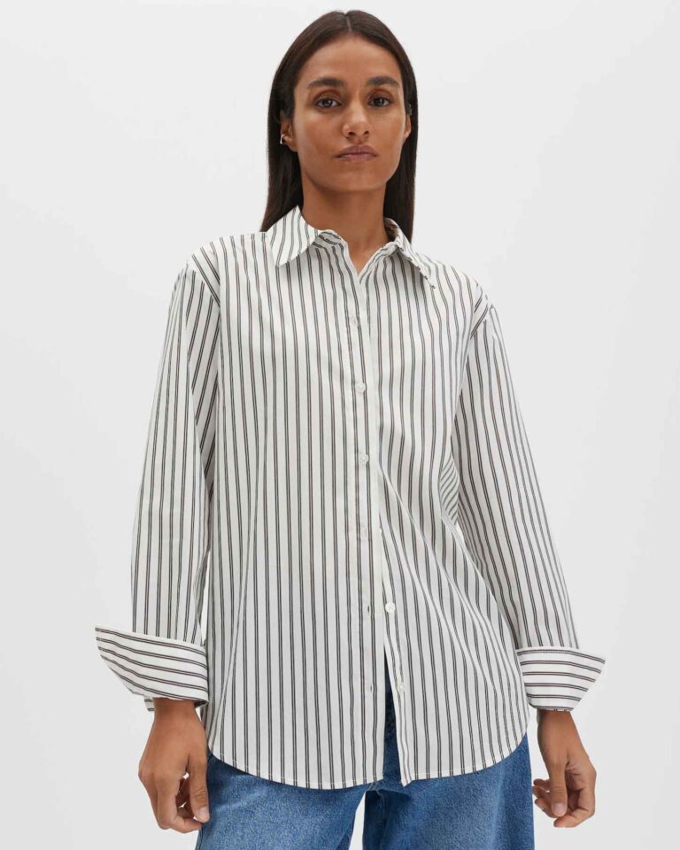 Blouse Zivian Espresso gestreept van Someday is een wijd uitgesneden, lange blouse van een zachte katoenmix en een echte tijdloze klassieker voor elk seizoen. Het vernieuwde gestreepte dessin geeft dit item een frisse, moderne uitstraling. Draag de blouse los voor een nonchalante look of onder een gebreide trui voor een eigentijdse preppy stijl die perfect combineert met een jeans met wijde pijpen. Dankzij de brede pasvorm, rechte snit en de langere achterkant oogt de blouse relaxed en stijlvol tegelijk.