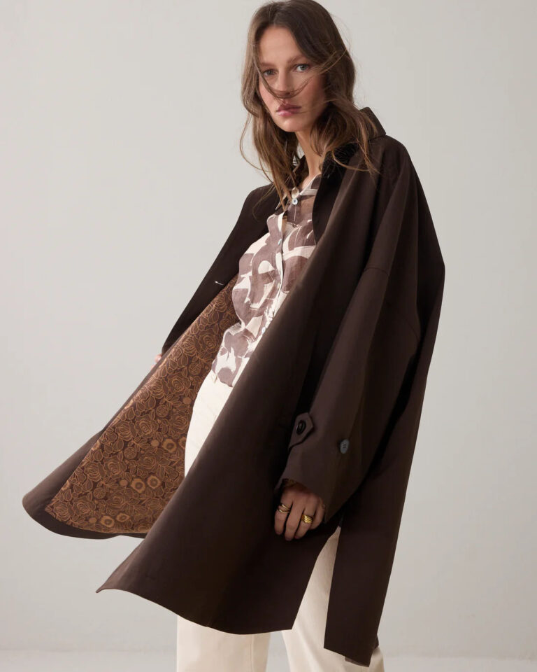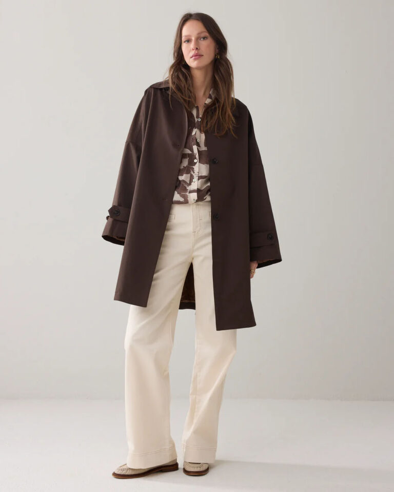 De jas sluit met knopen en heeft verstelbare manchetten met knoopjes, zodat je de mouwen naar wens kunt aanpassen. Daarnaast is de jas voorzien van steekzakken voor je essentials. Omdat het model oversized valt, adviseren we om een maatje kleiner te nemen als je een meer fitted look wilt.