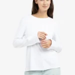 Deze comfortabele jersey top is voorzien van een ronde hals, lange mouwen en een normale pasvorm. De geweven manchetten met knoopsluiting geven het casual ontwerp een elegante touch, terwijl de verticale rugnaad subtiele structuur toevoegt. Gemaakt van zachte stretchstof voor optimaal draagcomfort, ideaal voor dagelijks gebruik.