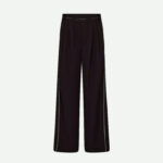De broek is voorzien van twee steekzakken aan de voorzijde en twee paspelzakken aan de achterkant, wat het ontwerp zowel praktisch als stijlvol maakt. Het biesdetail langs de zijkanten voegt een sportieve, verfijnde lijn toe en benadrukt het slanke effect van het model.