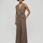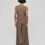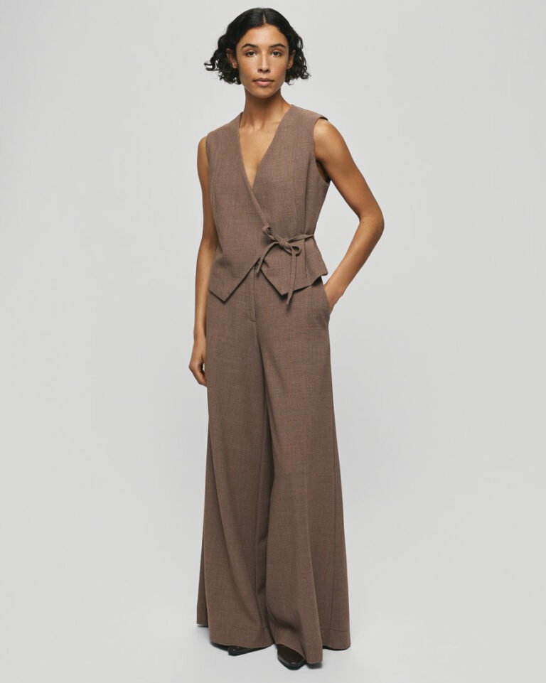 Pantalon Darina in de kleur bruin melange van MSCH Copenhagen is een high-waist item met wijde pijpen en een relaxte, losse pasvorm voor een moderne, comfortabele look. Het strakke voorpand, riemlussen en paspelzakken achter maken het een veelzijdig en stijlvol item, perfect voor zowel casual als nette outfits.