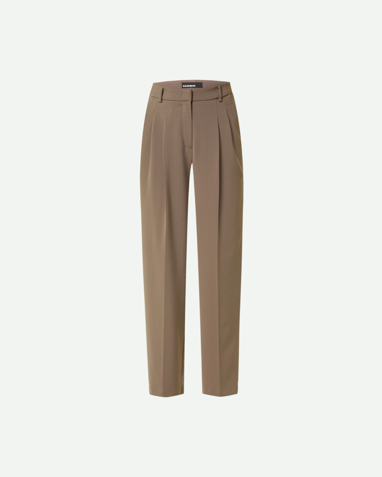 Pantalon Emelie van Cambio in het zacht bruin is een tijdloos elegante broek die moeiteloos chic en comfortabel combineert. Met een hoge taille en smal toelopende pijpen geeft hij een verfijnd silhouet dat zowel vrouwelijk als modern aanvoelt. De sluiting met knoop, haak en rits zorgt voor een nette afwerking terwijl de steekzakken aan de zijkant en de paspelzakken achter praktische details toevoegen zonder afbreuk te doen aan de stijl.