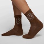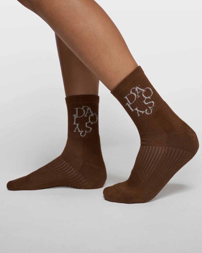 Sokken Dark Truffle bruin van 10Days zijn voorzien van een ingeweven โ€˜curly 10โ€™ op de enkel en een subtiel logo onder de voet. De geribde boord zorgt voor een comfortabele pasvorm, terwijl de glanzende lurexdetails in zilver een verfijnde, speelse touch toevoegen. Perfect om je outfit net dat beetje extra te geven.