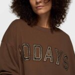 Het plooidetail voegt een speels accent toe en de ribgebreide boorden zorgen voor een mooie afwerking. Op de borst springt de 10DAYS varsity waterprint subtiel in het oog, afgewerkt met brass studs die net dat vleugje attitude toevoegen. Een detail dat deze sweater nรฉt even anders maakt en je outfit karakter geeft.