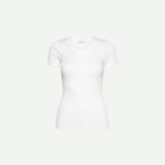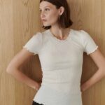 T-shirt Beatha Ecru van Rosemunde is een verfijnd basic item met een vrouwelijke twist. Dit zachte T shirt met korte mouwen is gemaakt van een luxe zijdeblend die soepel om het lichaam valt. De kanten afwerking langs de halslijn geeft het item een elegante en subtiele uitstraling, terwijl de kenmerkende gerolde zoom van Rosemunde zorgt voor dat nonchalante detail waar het merk zo geliefd om is. Perfect om solo te dragen voor een minimal chic look, maar ook ideaal als stijlvolle basis onder een blazer of vest. Een tijdloos en veelzijdig item dat moeiteloos past bij zowel casual als meer geklede outfits.