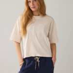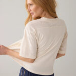 T-shirt Mesh Baseball in de kleur ivory ecru van Summum combineert sportieve invloeden met een luxe afwerking. De body is gemaakt van zachte katoenen jersey, terwijl de mesh inzetten bij de mouwen, zijpanden en schouderpas zorgen voor een luchtige en eigentijdse look. De boxy fit geeft het shirt een moderne, nonchalante uitstraling. De gebreide boordjes voegen een verfijnd detail toe en de ton sur ton mesh applicatie met het cijfer 98 verwijst subtiel naar het oprichtingsjaar van Summum. Een statement item dat comfortabel draagt en perfect past in een stijlvolle, sportieve outfit.