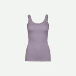 Top Babette Lila van Rosemunde is zoโ€™n subtiel verleidelijk item dat je outfit meteen een vrouwelijke upgrade geeft. Deze tanktop heeft een ronde hals aan de voorkant en een prachtig diep uitgesneden rug, afgewerkt met elegante kanten schouderbandjes. De zachte zijdeblend voelt heerlijk aan op de huid en valt soepel langs het lichaam, terwijl de kenmerkende gerolde zoom onderaan zorgt voor die typische Rosemunde touch. Dankzij het naadloze ontwerp aan de zijkanten draagt de top extra comfortabel en oogt hij mooi clean.