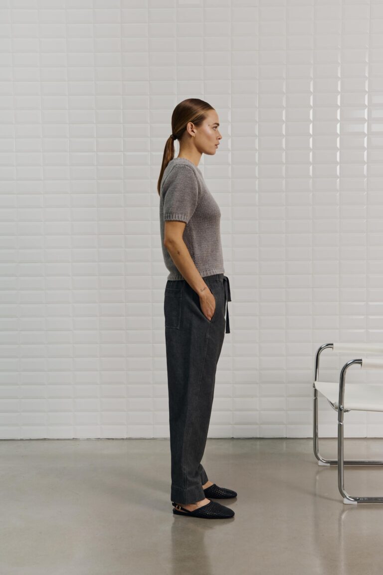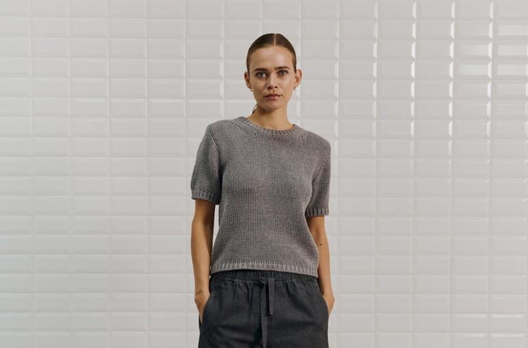 Deze trui heeft een O-hals en korte mouwen, uitgevoerd in een effen breisel met een normale pasvorm. Hij valt net onder de taille en is afgewerkt met ribboorden bij de hals, mouwzomen en onderkant, wat zorgt voor een nette en comfortabele look. Perfect voor een casual, veelzijdige outfit.