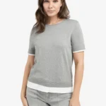 Deze zachte gebreide top heeft korte mouwen, een ronde hals en een comfortabele, normale pasvorm. De dubbele zoom en mouwafwerking in blouse-stof creรซren een subtiel gelaagd effect. Een veelzijdig item dat moeiteloos te combineren is met zowel jeans als rokken, voor een casual-elegante look met stijl.